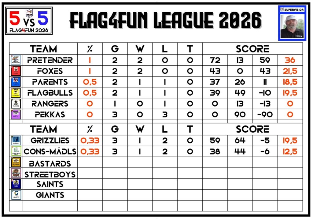 Am 12. April 2026 war Anpfiff zur neuen Saison. Aufgrund kurzfristiger Absage des Teams PEKKAS wurde am gleichen Tag noch der Spielplan unter Einbeziehung aller Liga-Teams adaptiert. Der Spielbeginn musste auf 10:00 Uhr verschoben werden.
