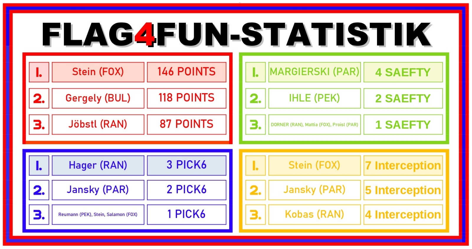 Herzlich Willkommen auf der offiziellen Webseite der FLAG4FUN-Liga (inklusive Spring Bowl und Hallowi(e)n Bowl).